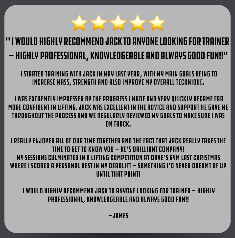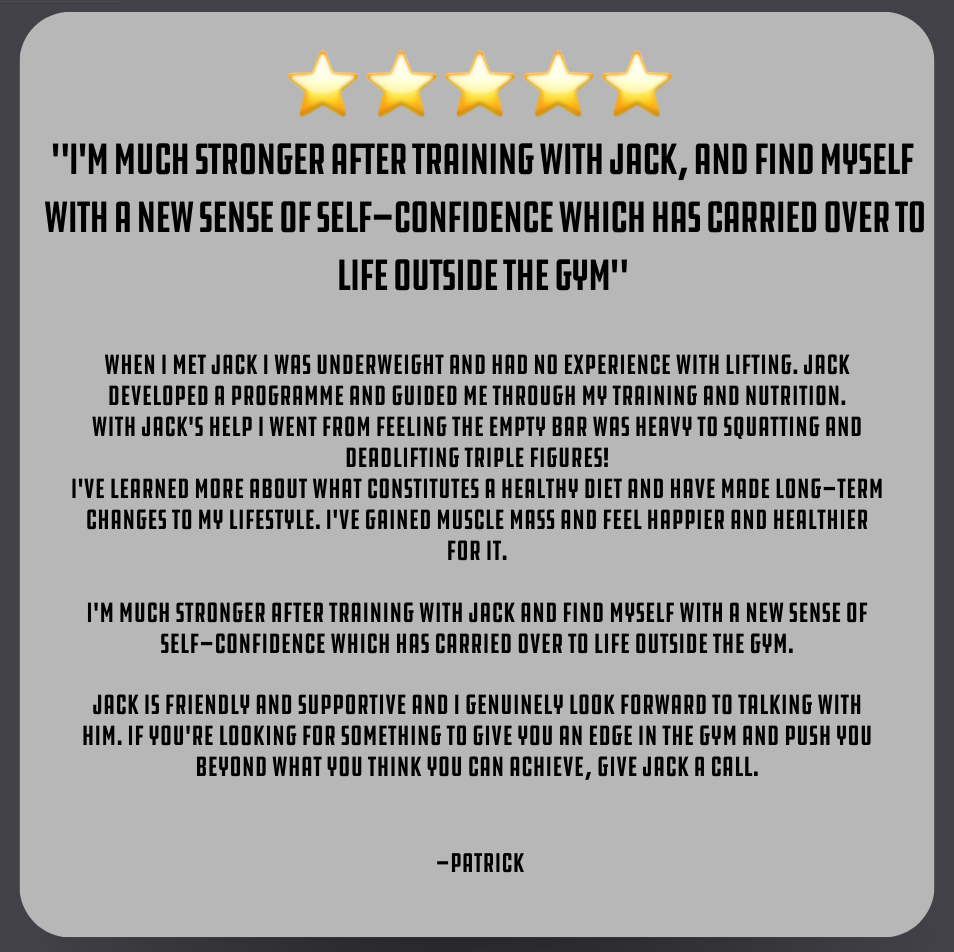 “Thanks to training with Jack, I now have improved willpower, determination, and self-belief to pursue my goals.”
