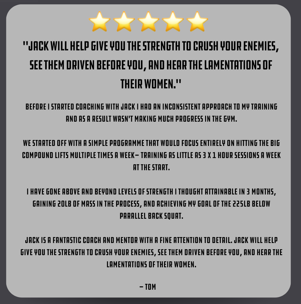 On the fence about committing to the very best version of yourself? Take a look at what some of the Cast Iron Strength existing lifters and graduates think!